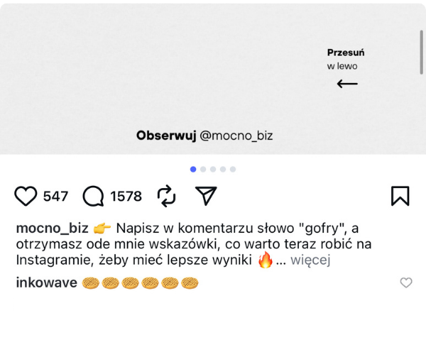 Ale powiem Ci jedno. Jestem 100% pewien wartości tego kursu i biorę całe ryzyko na siebie. Jeśli w ciągu 30 dni od zakupu zastosujesz strategie i wiedzę z mojego kursu, a nie będzie poprawy na Twoim profilu na Instagramie, to napisz na bardzo@mocno.biz, a przyjrzymy się Twojemu przypadkowi lub otrzymasz zwrot pieniędzy.