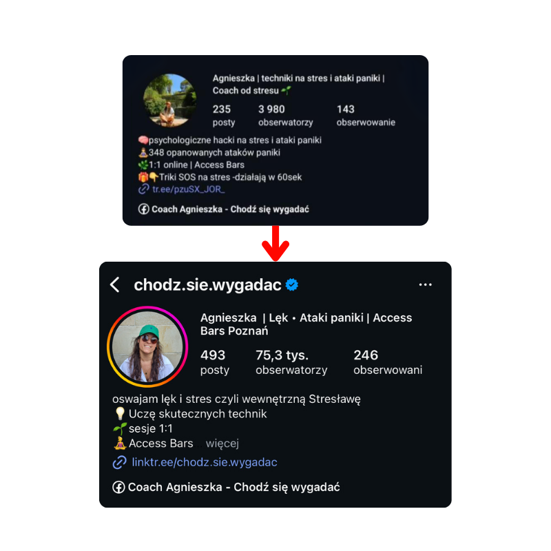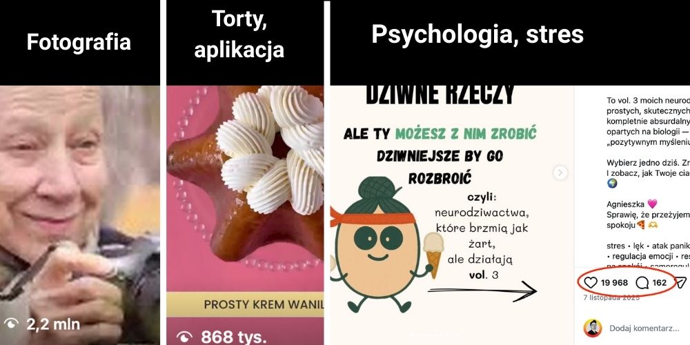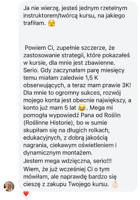 Startowałem od 0 obserwujących tak jak każdy. Moja nisza też była już zapchana. Dzisiaj moje wyniki są publicznie dostępne. Uczę tylko tego, co sam sprawdziłem u siebie i moich klientów.