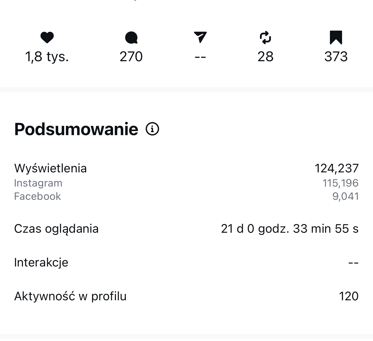 Oto wyniki mojej rolki storytellingowej. Zauważ ile jest komentarzy.