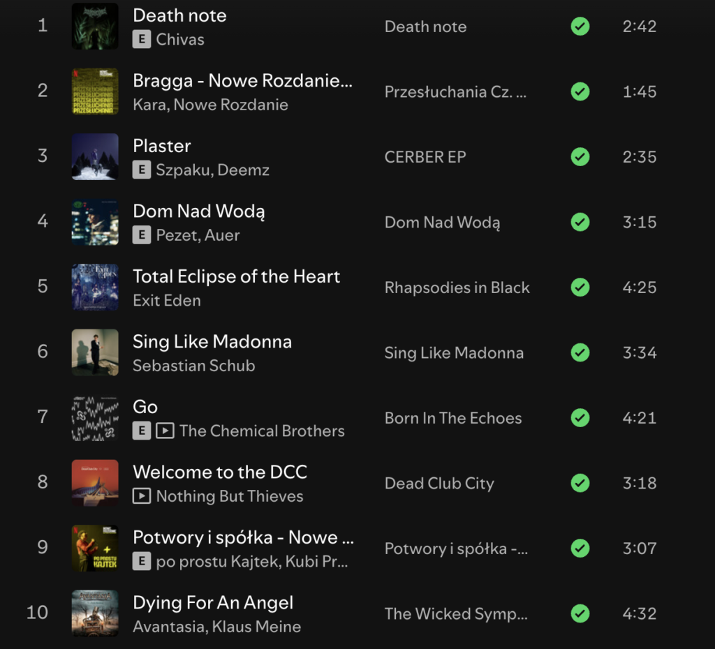 Moje Spotify Wrapped – 10 najczęściej słuchanych piosenek w ostatnim roku